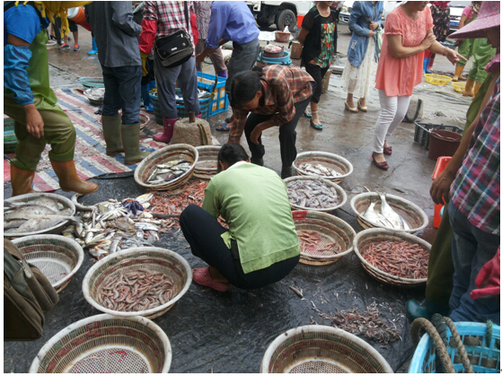 大家都在观望今天的价格,对于我们城里来的人早已被新鲜感打败,原本就不知道菜价,只知道这里的海货不仅新鲜而且便宜。这里的女人都是渔汉子,肩挑膀扛地把一箱箱海货弄上岸。每一箱海货都是各种海鲜混杂,大小不一,渔民们(依然是女人)迅速把海货分类,一篓篓的鱼、虾、蟹、尤鱼、以及我叫不出名的海货迅速被抢购,价格都没法商量如果不出手就没有了。