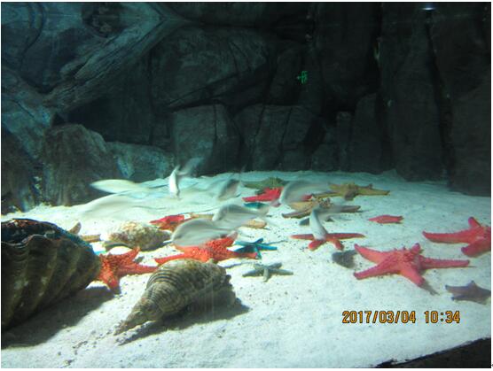 一进大门大家就被馆内浅海珊瑚礁、海苹果、海星、海龟、神仙鱼等形态各异的海洋生物吸引 ,在这里,游客可以亲手触摸这些难得的一见的海洋生物。每一个人都象孩童一样顿时充满了求知欲。