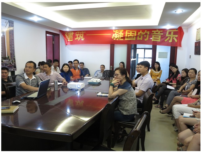 为了提升员工对建筑设计的认知,提高建筑设计鉴赏能力,2013年5月23日下午15:00时许,行政人事部组织公司员工参加了由林林副总主讲的《建筑-—凝固的音乐》艺术鉴赏培训。