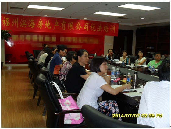2013年7月6日、7日两天,滨海地产与融信地产共同举办“土地增值税的税法培训”。培训课程由现任福建省税务学校副校长、国家税务总局房地产专家库成员之一蔡少优老师主讲,公司财务部、成本部全体人员积极报名参加