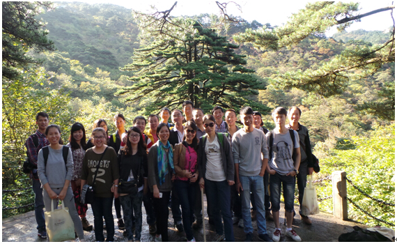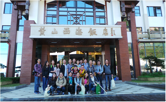 清晨不得不与黄山依依惜别了,在我们昨晚入住的酒店前来一张青春的合影吧。