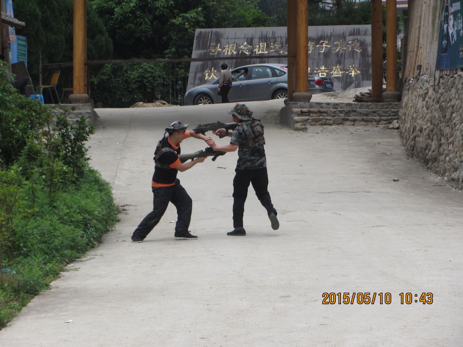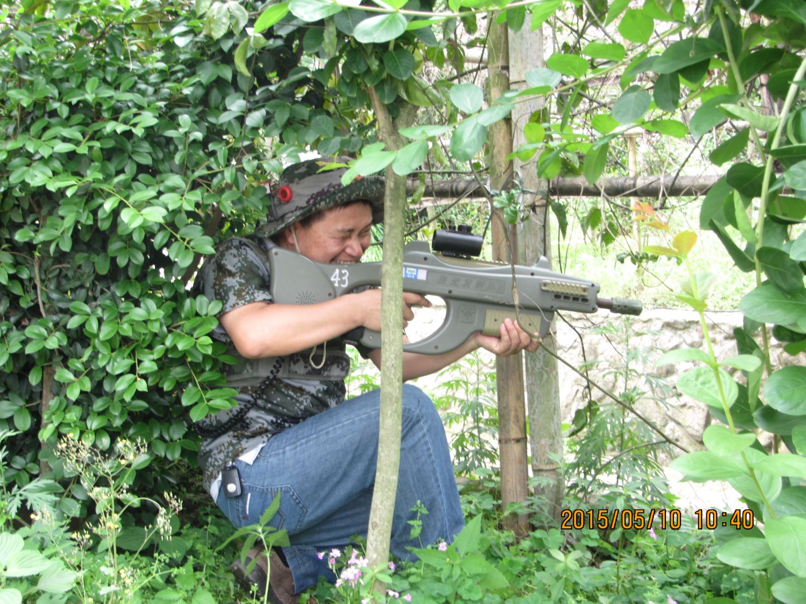 教练发出游戏开始的信号,我们当中很多没打过CS的队友就开始一阵狂扫,双方都不知道会是什么后果。看看隐蔽中的魁总监,似乎已经进入了状态,这是“花猫”在进攻哦。
