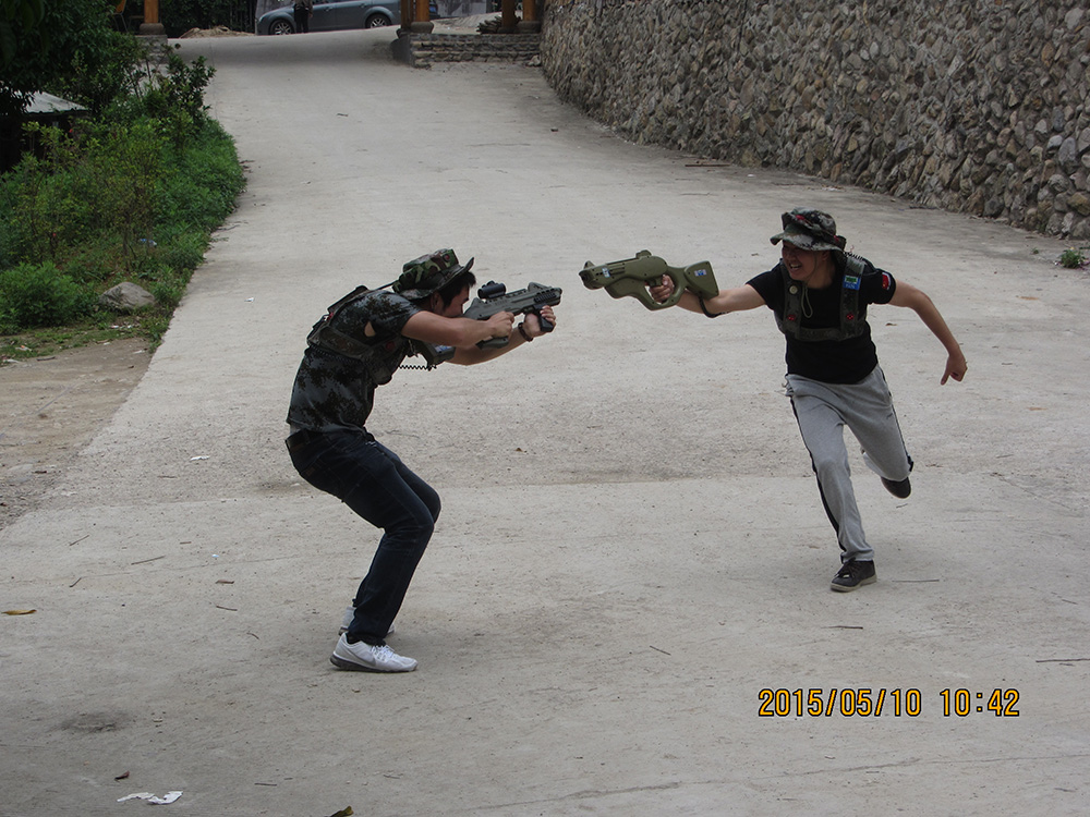 教练教我们怎么样使用激光枪,什么样的信号表示游戏开始与结束,被打中的身上会有震动,如果被打中三次就表示“不存在”啦。