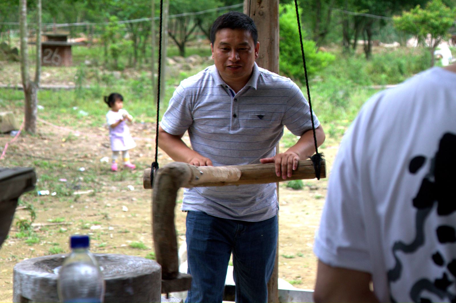 那边勤劳的磨豆子,这边认真地过滤豆浆,好一派忙碌。