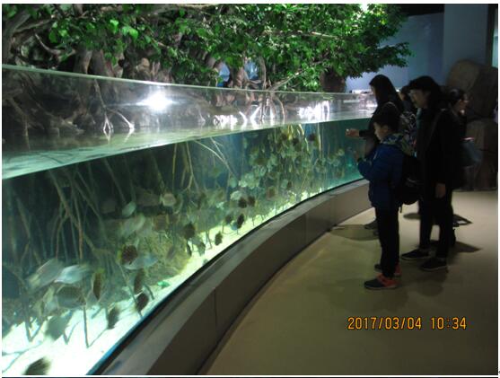 一进大门大家就被馆内浅海珊瑚礁、海苹果、海星、海龟、神仙鱼等形态各异的海洋生物吸引 ,在这里,游客可以亲手触摸这些难得的一见的海洋生物。每一个人都象孩童一样顿时充满了求知欲。